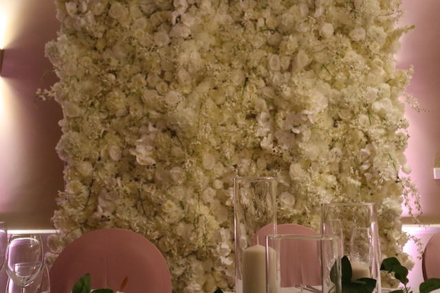 This exciting new White Flower Wall Backdrop Hire is on-trend, inspired by celebrity weddings such as Kim Kardashian’s to Kanye West. The images of the spectacular wedding decor went viral around the world, which left everyone talking about it and of course wanting to recreate it. Our flower wall backdrop is made with quality silk white roses, hydrangea, peony, cherry, orchid & greenery which are hand crafted and applied individually to create a realistic and natural looking floral backdrop.
